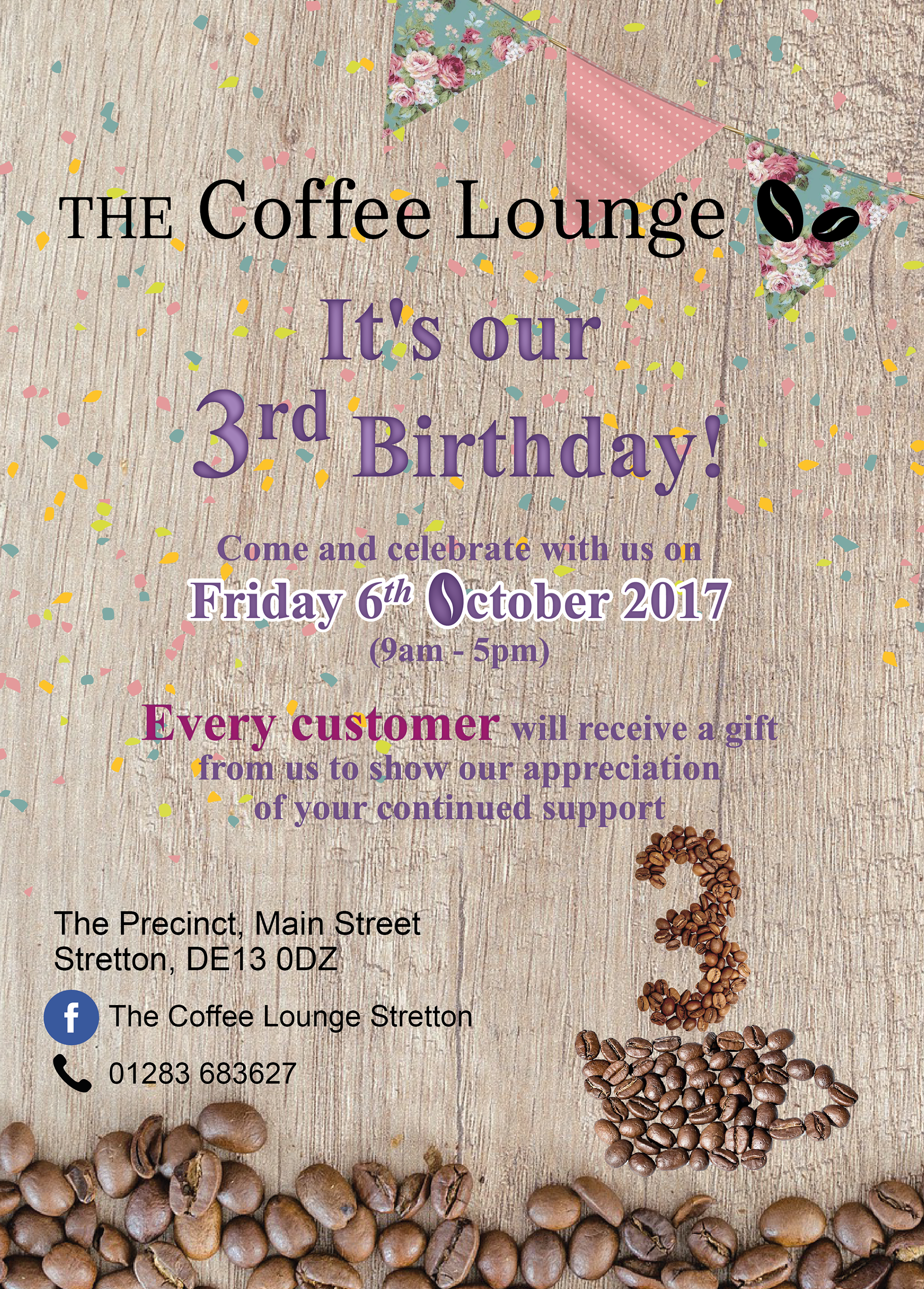 THE Coffee Lounge 3rd birthday poster and Facebook cover design